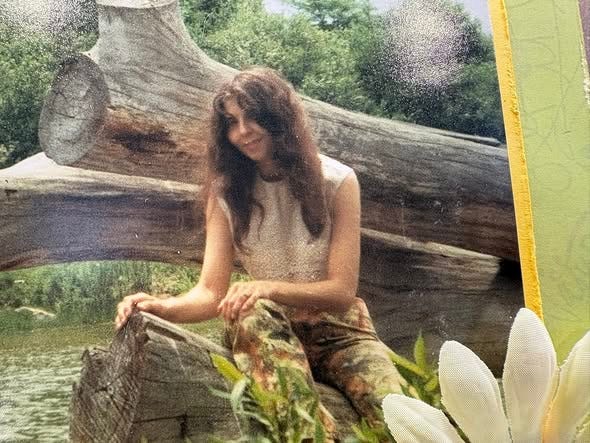 In the photo, my mother is probably 30 (1968) but looking much younger! 4 kids on and several miscarriages. It is on the Humber River, in Toronto, Jamestown - a housing project we lived in before moving to N. Ontario and “the farm”.
